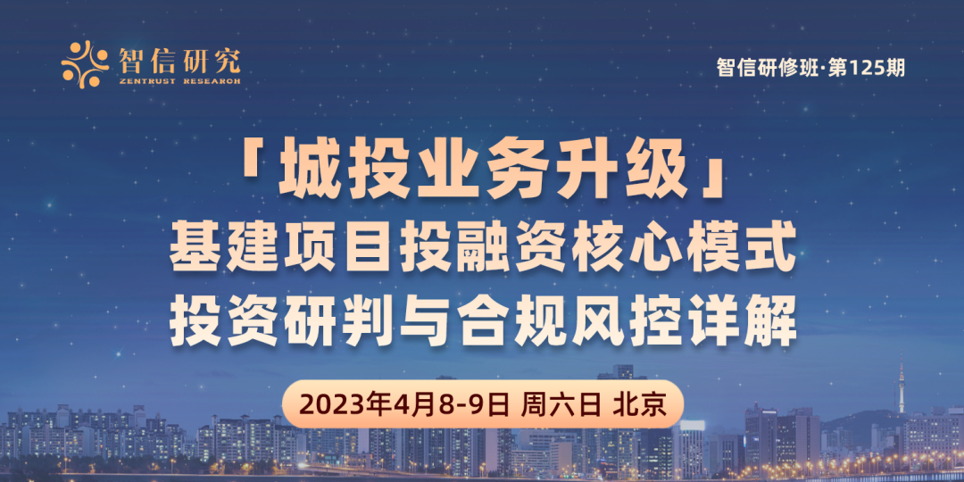 去年底,中共中央、国务院印发了《扩大内需战略规划纲要(2022-2035年)》,提出持续加强基础设施建设。“基建”已经按下快进键,因此2023年4月8日-9日(周六、周日),智信将在北京举行主题为城投业务升级:基建项目投融资核心模式、投资研判与合规风控详解的资管业务线下研修班。